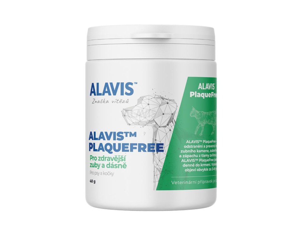 - ALAVIS™ Plaque Free je veterinární přípravek pro psy a kočky