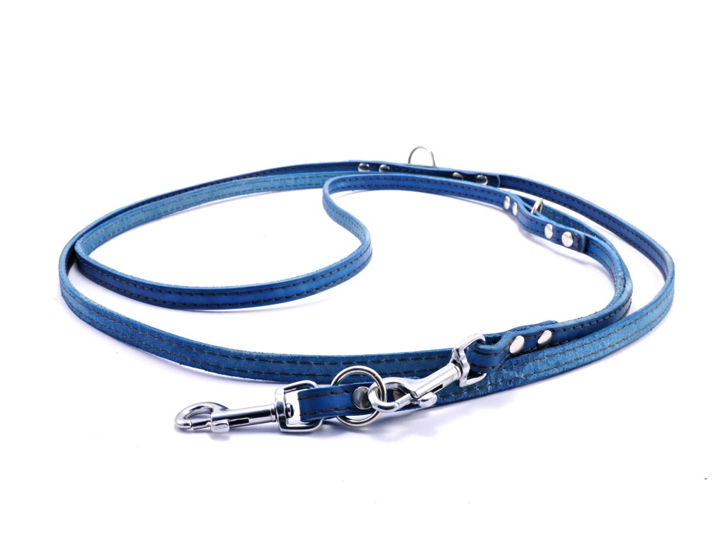 Vodítko je opatřeno třemi kovovými oky, díky kterým si nastavíte délku podle aktuální potřeby a to nejkratší délku 125 cm, střední varianta 180cm a maximální délku 205cm.