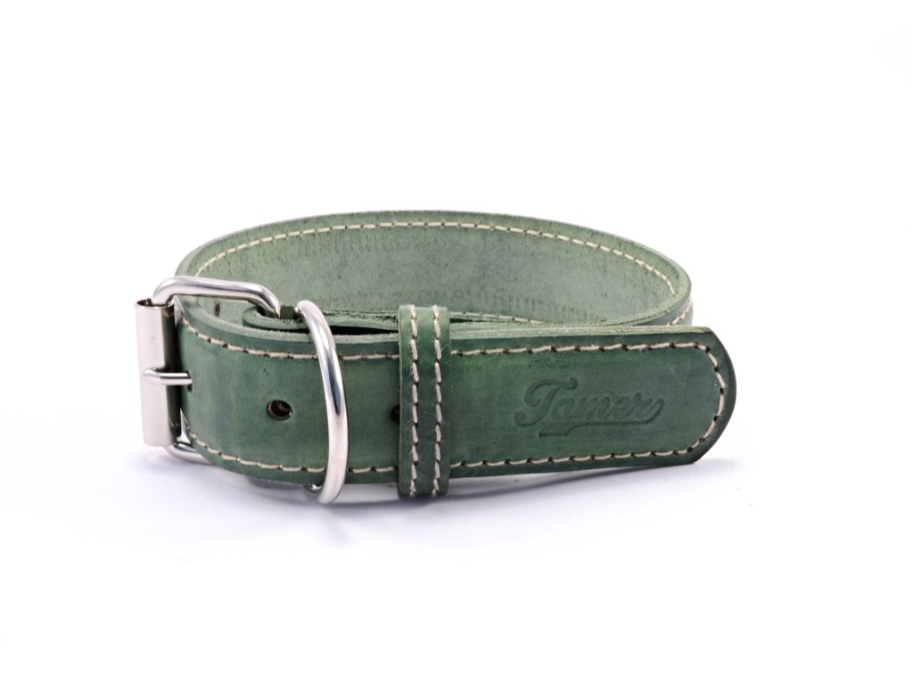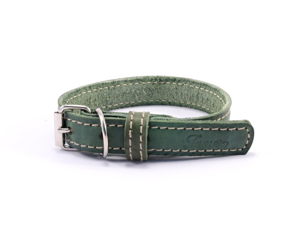 Kožený obojek STUBBY | zelený
