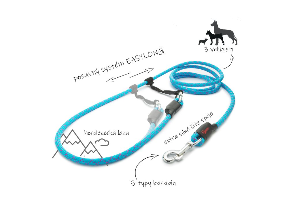 Patentovaná technologie EASY LONG vám umožní snadným pohybem prodloužit či zkrátit vodítko na vámi požadovanou délku. Vodítko je velmi pevné, nedochází tedy k tzv. pružinovému efektu, který může být nežádoucí u „flexibilních“ vodítek. Nevytváří tak špatné návyky při vedení na vodítku. Naopak vodítko je velice populární při výcviku nebo sportu.