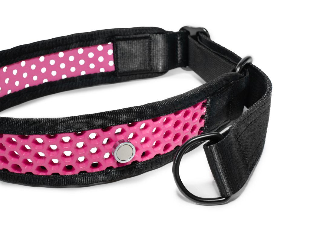 Obojek díky svému designu a polostahovacímu mechanismu působí na psa přirozeně, bez zbytečného stresu. Snadno se nasazuje i sundává složitého zapínání, což oceníte zejména při rychlých přípravách na procházku. Navíc je opatřen silným magnetem pro uchycení konce, pokud je pejsek na volno. Magnet můžete vyndat, či posunout a přizpůsobit požadované velikosti.