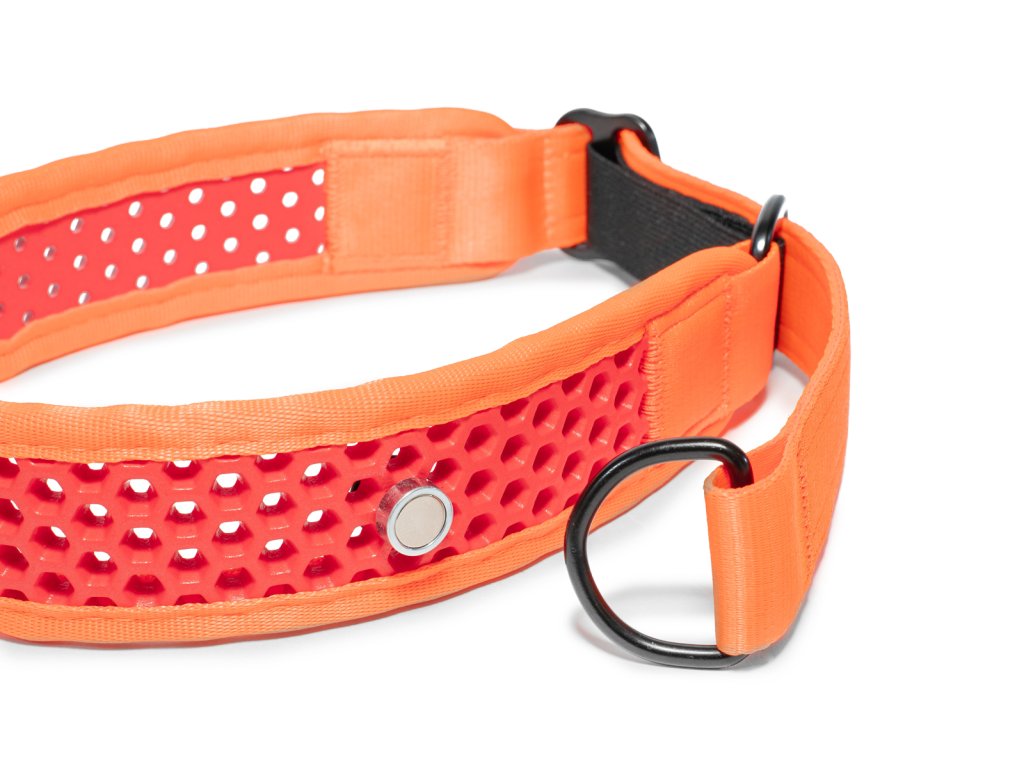 Obojek díky svému designu a polostahovacímu mechanismu působí na psa přirozeně, bez zbytečného stresu. Snadno se nasazuje i sundává bez složitého zapínání, což oceníte zejména při rychlých přípravách na procházku. Navíc je opatřen silným magnetem pro uchycení konce, pokud je pejsek na volno. Magnet můžete vyndat, či posunout a přizpůsobit požadované velikosti.