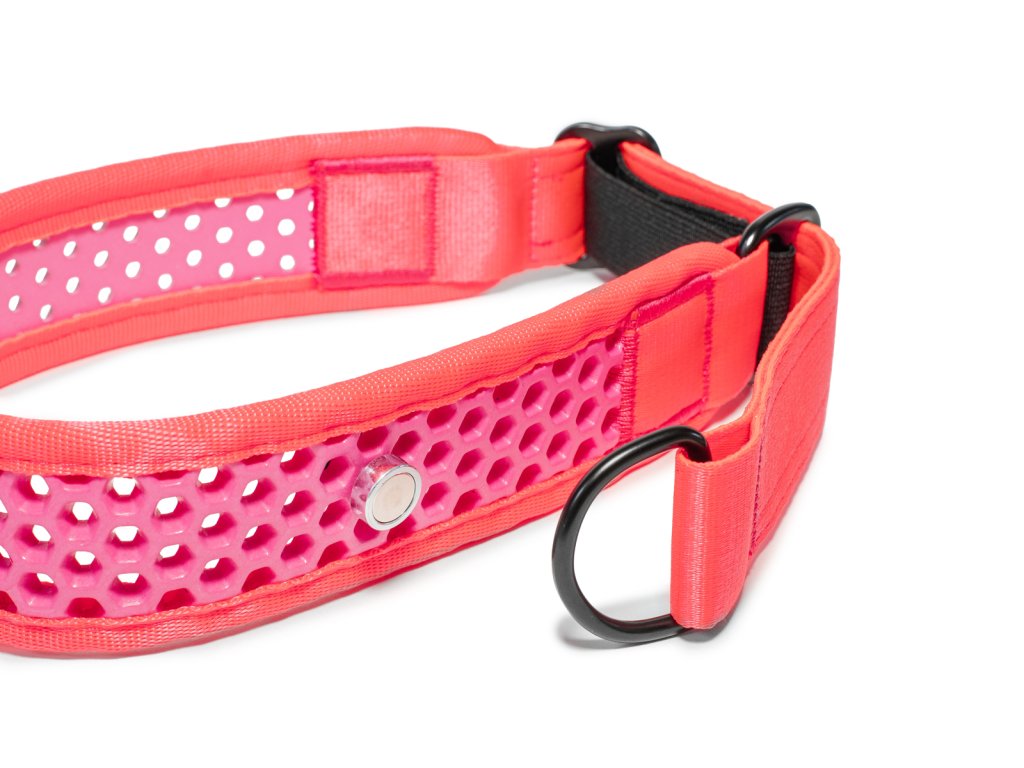 Obojek díky svému designu a polostahovacímu mechanismu působí na psa přirozeně, bez zbytečného stresu. Snadno se nasazuje i sundává bez složitého zapínání, což oceníte zejména při rychlých přípravách na procházku. Navíc je opatřen silným magnetem pro uchycení konce, pokud je pejsek na volno. Magnet můžete vyndat, či posunout a přizpůsobit požadované velikosti.